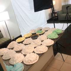MelonieNosha had a pie put on a stool to be sat on by Big Bird the Clown