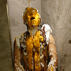 Getmessy924 had a sloppy pie dumped all over his head by megapies